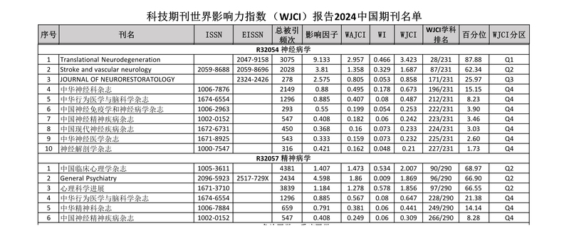 喜报 |《中华行为医学与脑科学杂志》继续入选《科技期刊世界影响力指数(WJCI)报告》(2024)